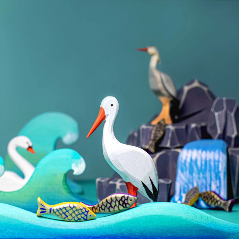 A Bumbu Toys kézzel faragott gólyája egy gyönyörű kézműves játék, egy kecses hosszú csőrű, karcsú lábú fajáték madár. A bükkfából készült, természetes alapanyagú festékekkel festett varázslatos figura közelebb hozza gyermekedet a vadon élő állatokhoz.