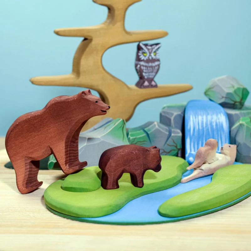 Hozd közelebb a természetet ezzel a kézzel készült Bumbu Toys nagy medvével, ami azonnal játékra hívja gyermekedet! A fenntartható bükkfából faragott és kézzel festett, robosztus figura készen áll a végtelen kalandokra! Gyermeked kitalálhat vele izgalmas meséket, elősegíti a nyílt végű játékokat és az állatok iránti szeretetet. Kézzel festett, biztonságos, nem mérgező festékekkel, figyelve a valósághű részletekre, mint például a szőrös kinézetre.