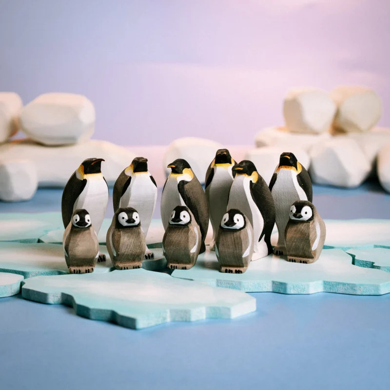 Hozd közelebb a természetet és a kreativitást a gyermekeidhez ezekkel a varázslatos kézzel készült Bumbu Toys fajáték családdal! A pingvinek nagyon társasági lények. Mindent együtt csinálnak. Esznek, úsznak, vadásznak, fészkelnek.