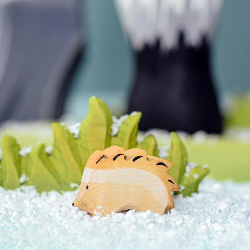 A kis Bumbu Toys süni egy aprólékosan, kézzel faragott fajáték, mely élethűen adja vissza az állat apró tüskéit, barátságos természetét. A természetes fa erezet és ívei tökéletesen utánozzák a sündisznó testét, míg a kézzel festett részletek életre keltik ezt az apró állatkát.