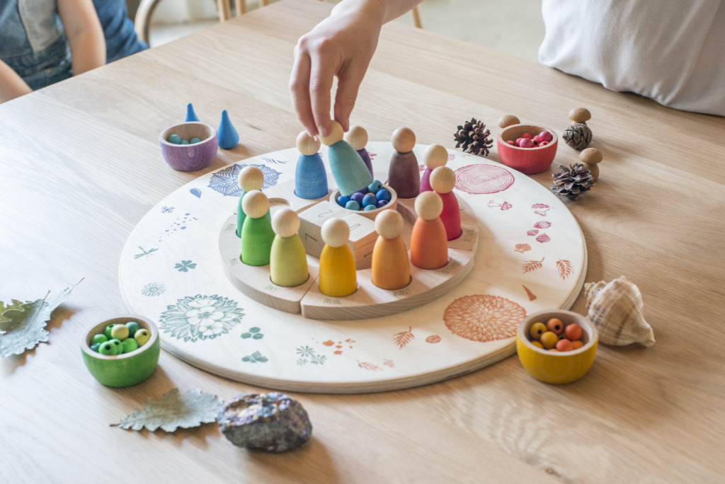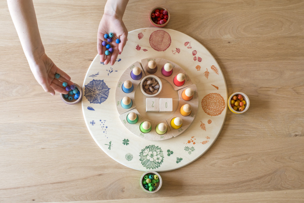 Ez a különleges alap segít a gyermekeknek játékosan megérteni az év körforgását és a természet állandó változását. Az elemek az óramutató járásával ellentétes irányban követik egymást, így vizuálisan is támogatják a ciklikusság megfigyelését.