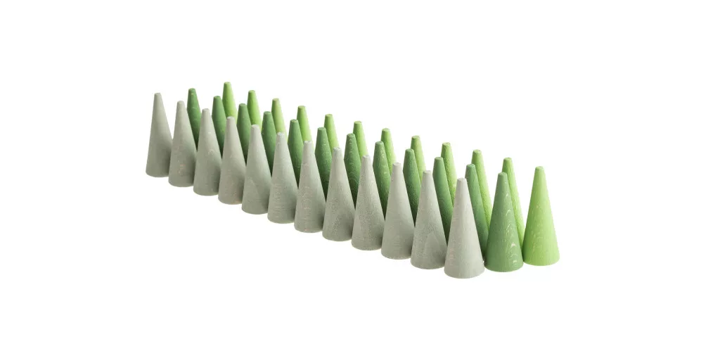A Grapat Zöld kúp mandala készlet kézzel festett fa kúpokból áll, amelyek friss, zöld árnyalataikkal a természetes játékélményt hozzák el a gyerekszobába.