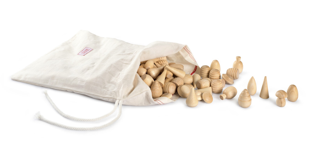 • 120 darab natúr fa mandala elem – 6 különböző formában, vászon szatyorral