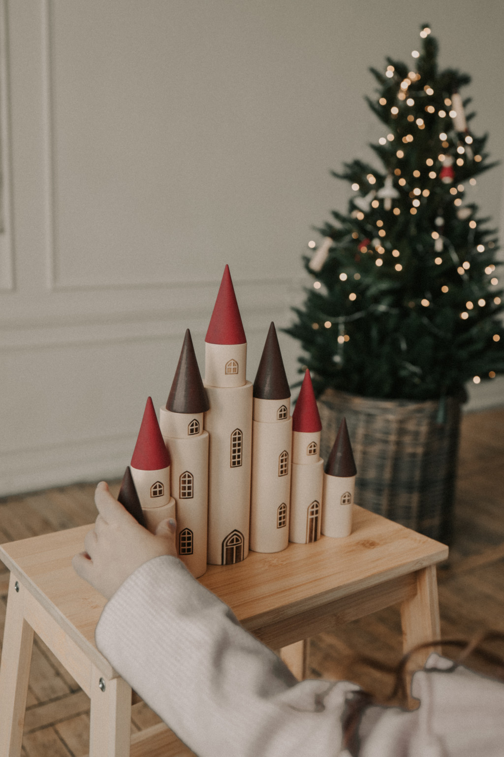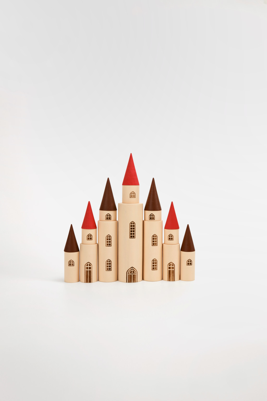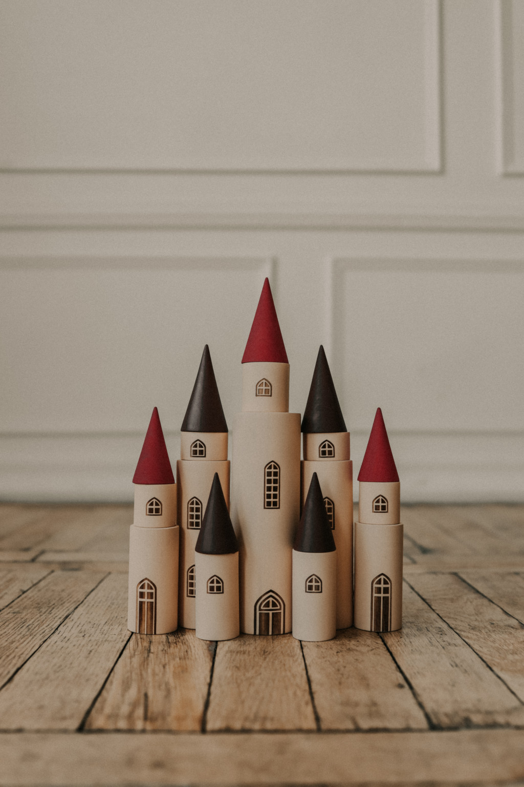 A részek kombinálhatók, így a gyerekek saját tündérmesés kastélyukat építhetik a fantáziájuk szerint. Minden darabot vízbázisú festékkel festettek, amely megőrzi a fa természetes struktúráját.
