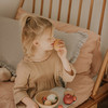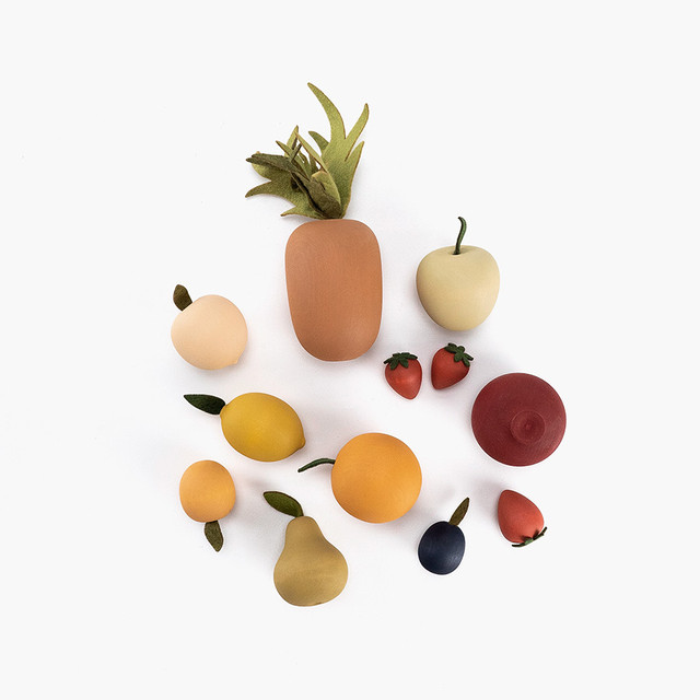 Ez a nagy fa gyümölcskészlet 10 féle gyümölcsöt tartalmaz: ananász, gránátalma, körte, alma, őszibarack, sárgabarack, szilva, narancs, citrom és 3 eper. Minden darab faanyagból készült, és vízbázisú, nem mérgező festékkel van bevonva, így teljesen biztonságos a gyerekek számára. A gyümölcsök alaposan csiszoltak, kellemes tapintásúak.
