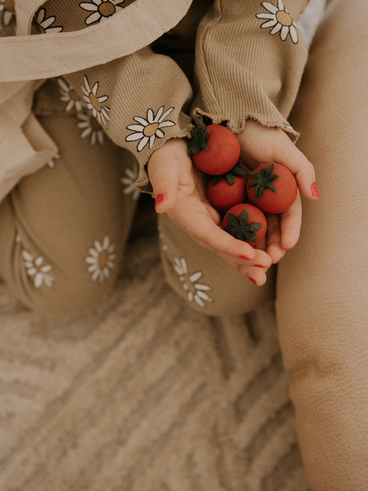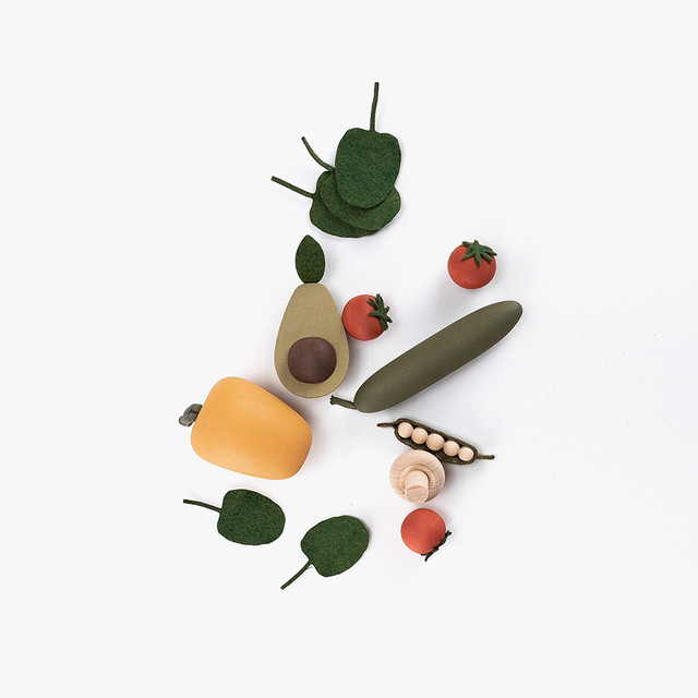 A zöldségek fából készültek és vízbázisú festékkel vannak bevonva – teljesen biztonságos a gyermekek számára.