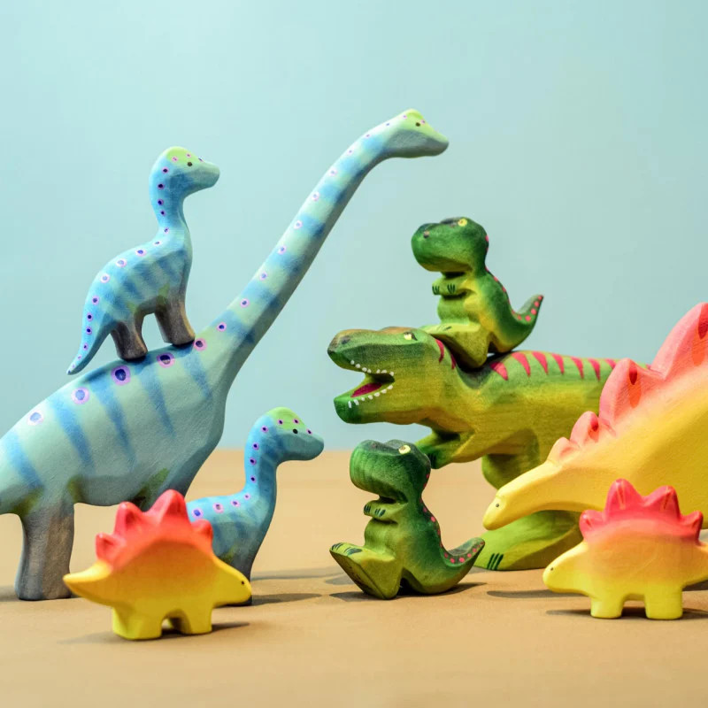 A fenntartható forrásból származó fából készült és nem mérgező, élénk színekkel festett fajátékkal játszva tanulhat gyermeked a történelem előtti életről és a természetről.
